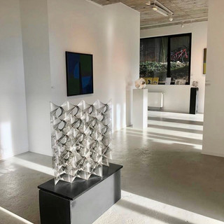 Nous présentons également une sélection de sculptures en polystyrène, ainsi que ses énigmatiques sculptures d’acier, intégrant le Paraboloïde Hyperbolique au centre de ses recherches.