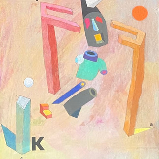 Les cubes, pyramides, parallélépipèdes, sphères et schémas perspectifs reviennent de manière obsessionnelle. Ils incarnent la tentation de l’ordre, de la raison, de la maîtrise du monde. Mais ces formes sont toujours instables : mal alignées, bancales, isolées, parfois absurdes.